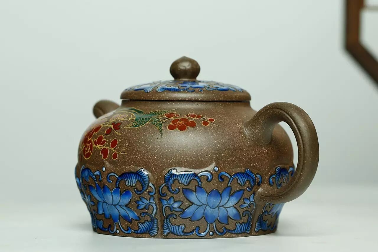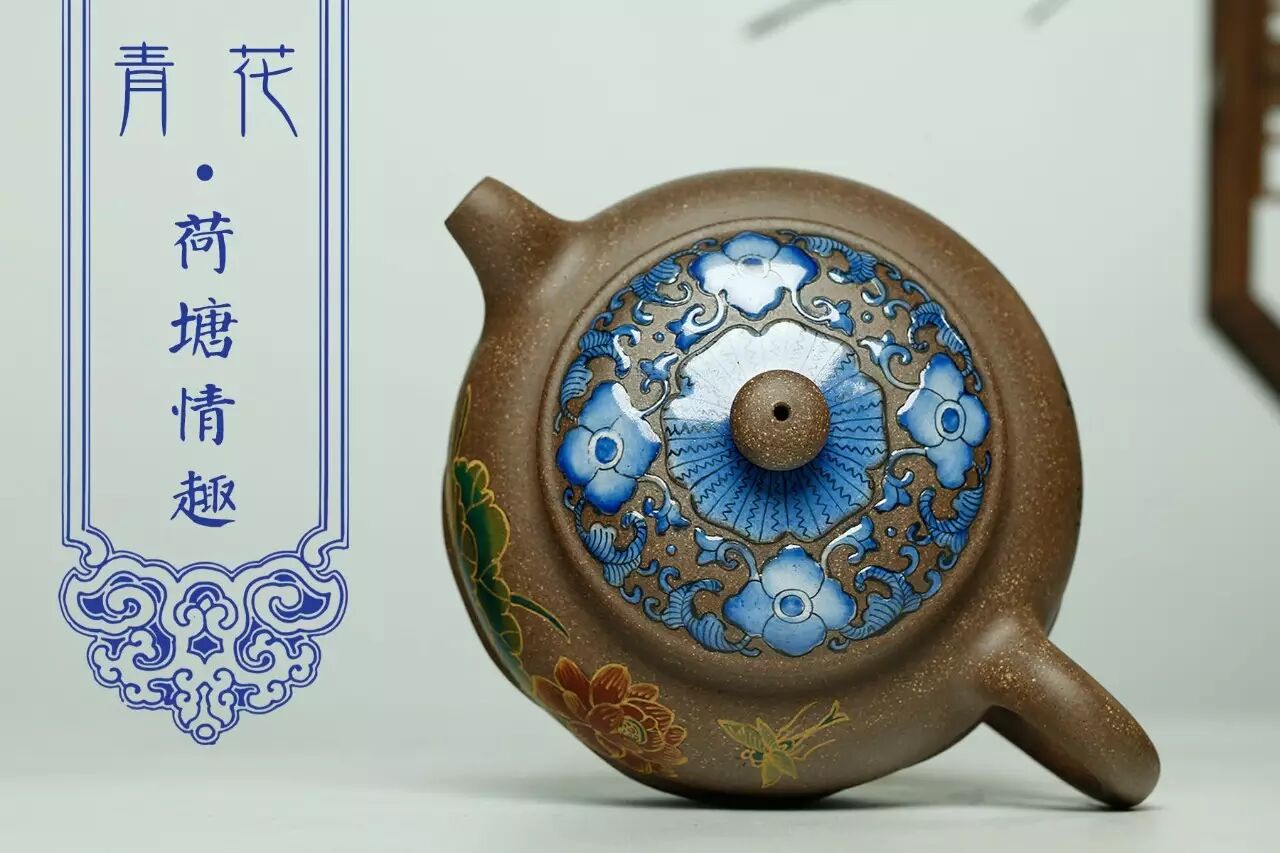 紫砂与珐琅的结合在现代并不少见,但是融入了青花的元素,这倒是比较新奇的。本次蜀工坊推出的精美【青花珐琅系列】,用珐琅于壶身施釉,配以青花图案,给你不一样的文人壶。